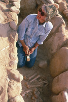 Jordan. Feifa, Susanne Rast in early Bronze Age I slab, lined cyst tomb