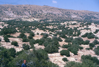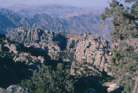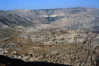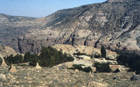 Jordan. Dana Forest, view east from campsite up to cement factory