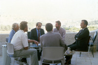 Jordan. Jack Lee, Don Whitcomb, Prince Ra'ad, Emir Hassan on ACOR Director's balcony