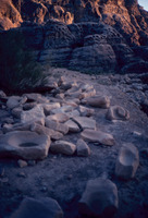 Jordan. Petra, Beidha (archaeological site) grinding stone in wall