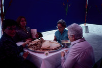 Jordan. Arab Potash Company inaugaration ceremony, 17 March 1982with Kady, Aunt Flo, Violet Jabara (Linda Jacob's mother) and traditional Jordanian dish "mansaf"