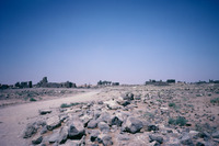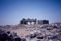 Jordan. Mafraq, Umm el-Jimal, west church and modern village