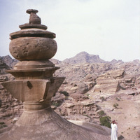 Jordan. Petra, ad-Deir (Monastery) detail of urn