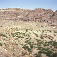 Jordan. Petra, cathedral complex of Royal tombs in background
