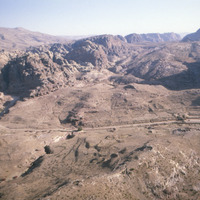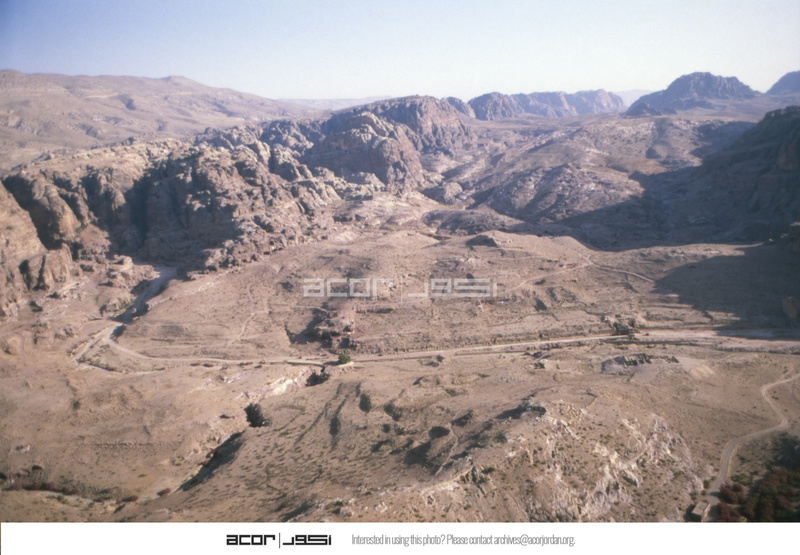 Jordan. Petra, central Petra showing major excavations, from north, aerial