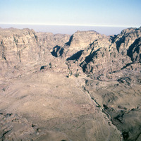 Jordan. Petra, Petra valley showing major excavations, aerial