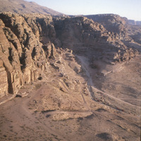 Jordan. Petra, Petra tombs/theatre, aerial