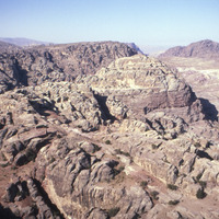 Jordan. Petra, high place, oblisks, from the north , aerial