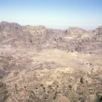 Jordan. Petra, distant shot of entire Petra valley, aerial