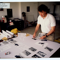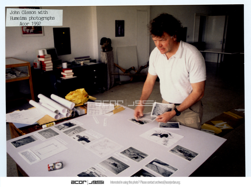 Jordan. Amman, ACOR, John Oleson preparing the Humeima photo display