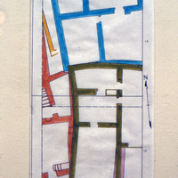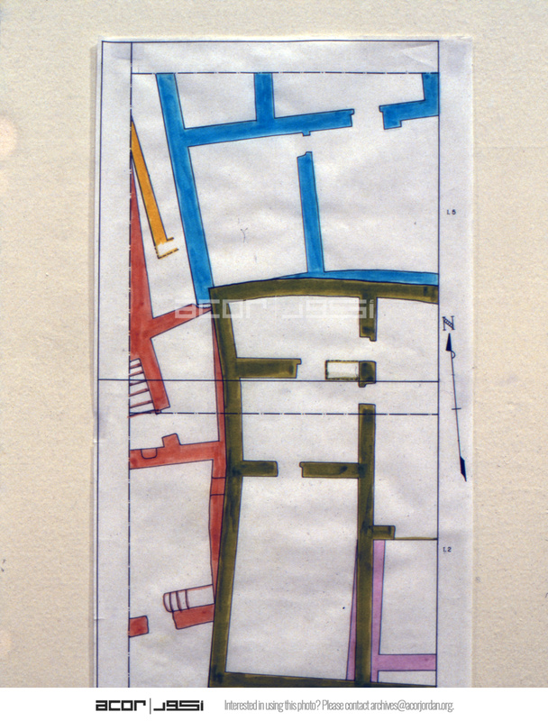 Jordan. Petra, color plan of structures in area 1, house excavations