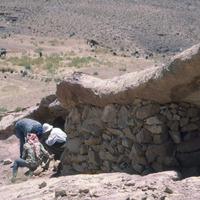 Jordan. Petra, mahsan (storage structure) A'id, site 88-5, agriculture fields in background