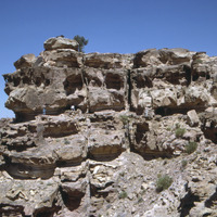 Jordan. Petra, Tor Sharafat at-tweil site 88-27, cave and alcove, looking west