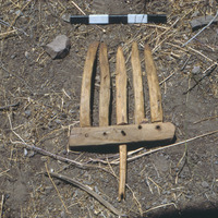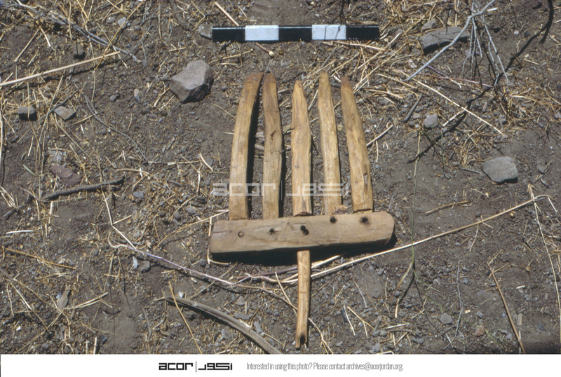 Jordan. Petra, Tiran Sabra, site 88-20, winnowing fork from habitation in upper alcove