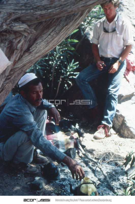 Jordan. Petra, Inweijeh and Steve Simms at black tent site in Wadi al Wagit