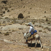 Jordan. Petra, Steve Simms on donkey on trip to Wadi Ed-Delaya
