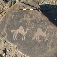Jordan. Petra, camel petroglyphs, Wadi Judaiyid