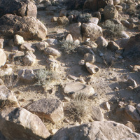 Jordan. Petra, stone circle with quern lense cap on quern for scale, waterfall site, Wadi Judaiyid