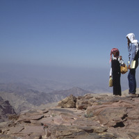 Jordan. Petra, overview of Wadi Araba from Jebel Farasah, Inweijeh and Kenneth Russell