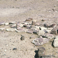 Jordan. Petra, abandoned tent encampment northeast of Jebel Farasah, "leben platform"