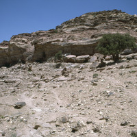 Jordan. Petra, looking west at site H-9, Jebel Farasah. Structure A at center, structure B to left