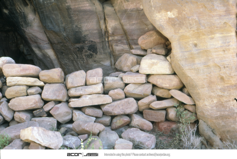 Jordan. Petra, site H-4, wall in front of shallow cave component