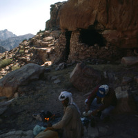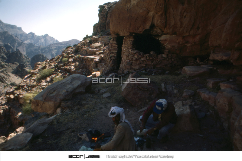Jordan. Petra, site H-2, Dakhilallah Qublan's house, tea on the way
