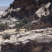 Jordan. Petra, sites H-1 and S-1, overview from across side Wadi Wadi Muesra to left, Wadi Marwan