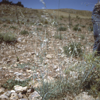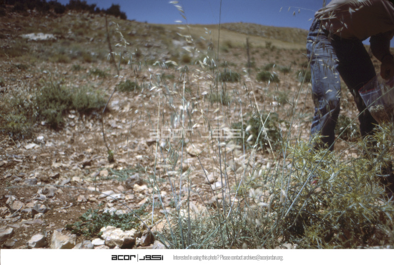 Jordan. Petra, close up of wild grass in stand on plateau above Petra, just north of turnoff to el-Hai. Steve Simms collecting to right