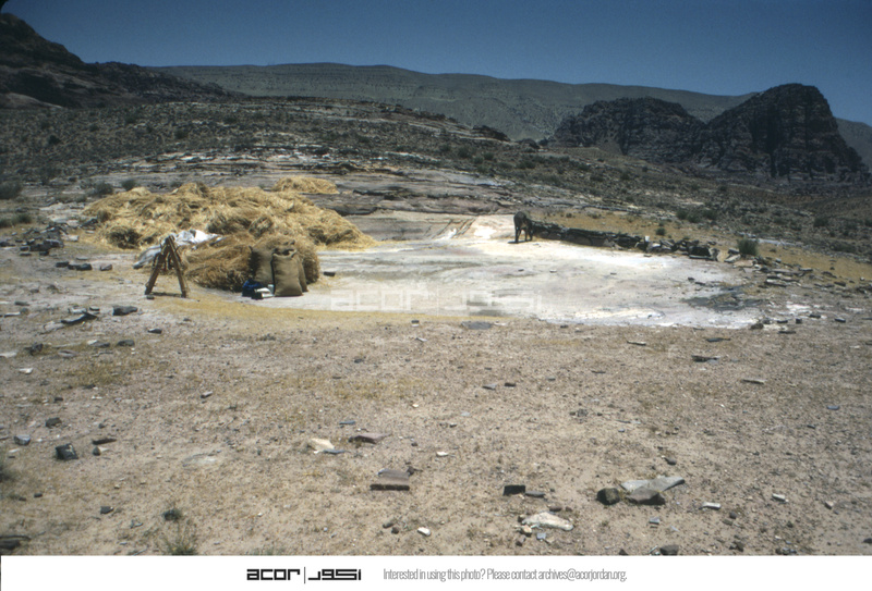Jordan. Petra, threshing floor, stacked grain, and camel saddle, at extreme south of Petra
