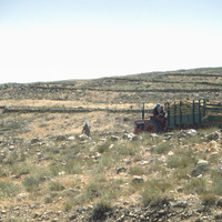 Jordan. Petra, tractor and grain wagon on plateau above Petra, just north of turn off to el-Hai