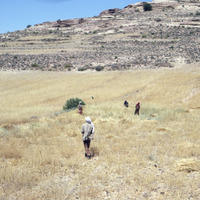 Jordan. Petra, hand-harvesting in wheat field at head of Wadi Marwan. Wheat samples 7 (tall, thick) and S (short, thick)