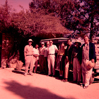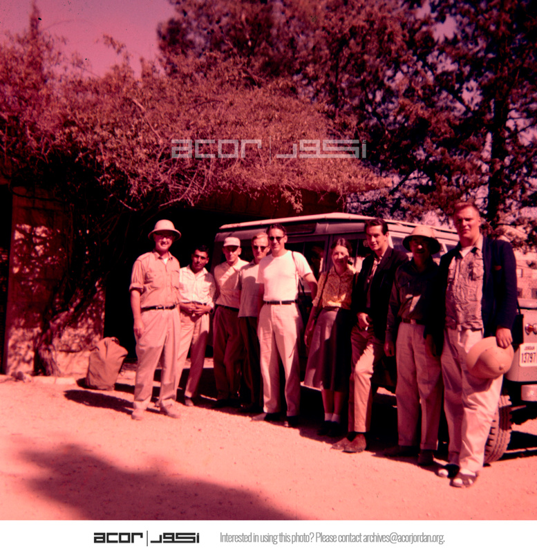 Jordan. Iraq al-Amir, 1962 excavation staff outside ASOR