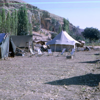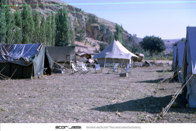 Jordan. Iraq al-Amir, looking east at work and cook tents in camp