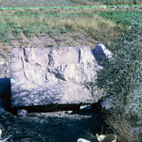Jordan. Iraq al-Amir, lion outline on block turned over at north end of Qasr al-Abd