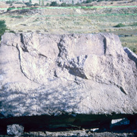 Jordan. Iraq al-Amir, lion outline on block turned over at north end of Qasr al-Abd