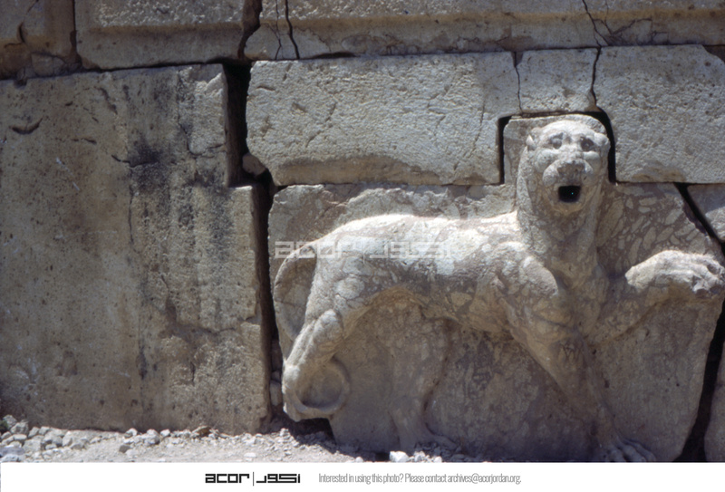 Jordan. Iraq al-Amir, feline fountain in Qasr al-Abd east wall