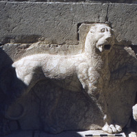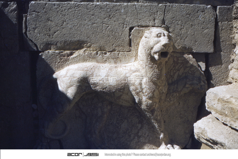 Jordan. Iraq al-Amir, Qasr al-Abd, closeup of feline fountain with wall removed