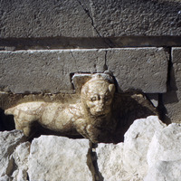 Jordan. Iraq al-Amir, closeup of feline fountain
