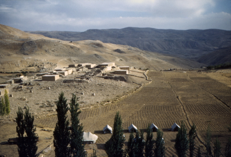 Jordan. Iraq al-Amir, looking south at village and camp from caves