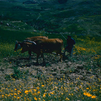 Jordan. Iraq al-Amir, closeup of plowing from Nancy's camp tent