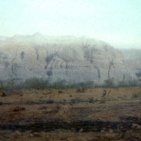 Jordan. Cliffs of gray and yellow in the Ghor Al Mazra'a