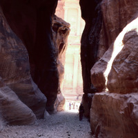 Jordan. Petra, Khaznet Far'oun (Treasury) from Siq