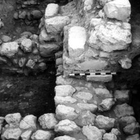 Jordan. Iraq al-Amir, square I.4, looking north at Iron Age I fort wall below plaster walls