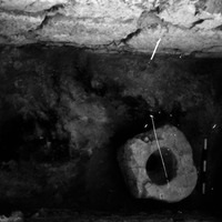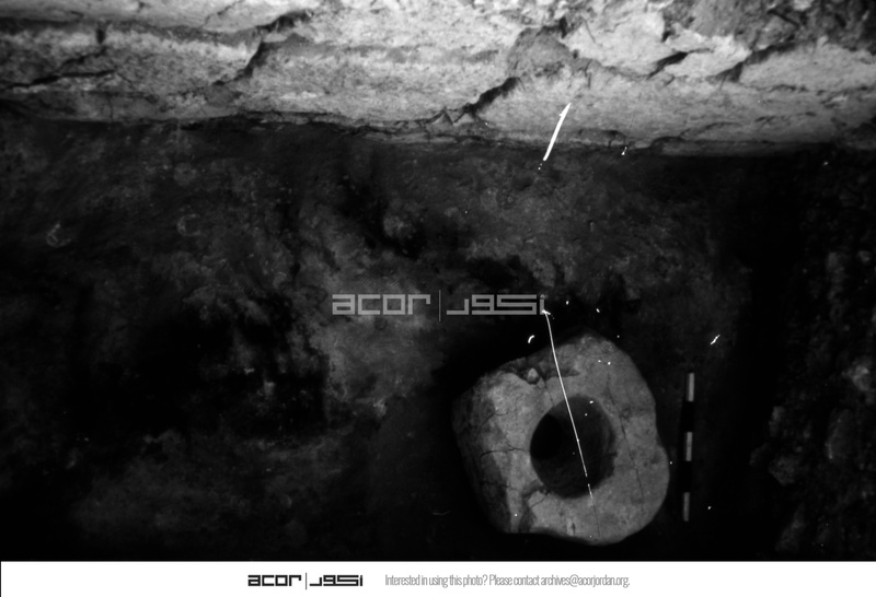Jordan. Iraq al-Amir, square II.7, looking north at millstone on floor