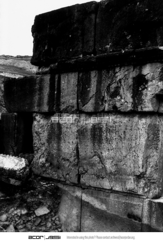 Jordan. Iraq al-Amir, square II.12, first four standing courses of stones of Qasr al-Abd walls