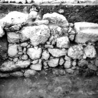 Jordan. Iraq al-Amir, square I.1.69, looking south at wall with socket to east blocking west