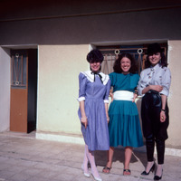 Jordan. LuLu and Lena Khasawneh with Linda Jacobs in front of her house