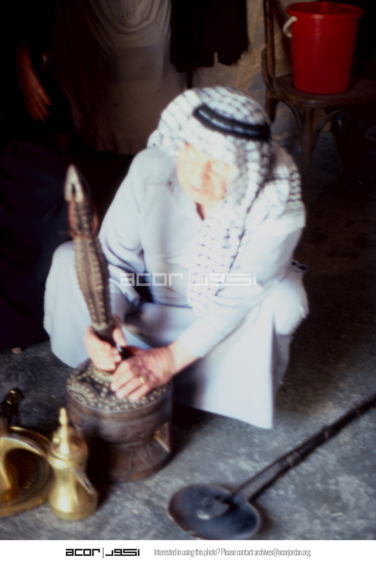 Jordan. Irbid, al Husn, Helen's (?) grandparents' grinding coffee