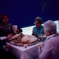Jordan. Arab Potash Company inaugaration ceremony, 17 March 1982with Kady, Aunt Flo, Violet Jabara (Linda Jacob's mother) and traditional Jordanian dish "mansaf"